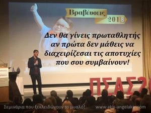 Αυτό που μου έμεινε μεταξύ άλλων, από τη χθεσινή βραδιά ήταν μια πρόταση του : "Δεν θα γίνεις πρωταθλητής αν πρώτα δεν έχεις μάθει να διαχειρίζεσαι τις αποτυχίες!"