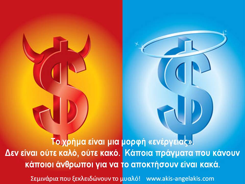 Το χρήμα δεν είναι ούτε καλό, ούτε κακό.