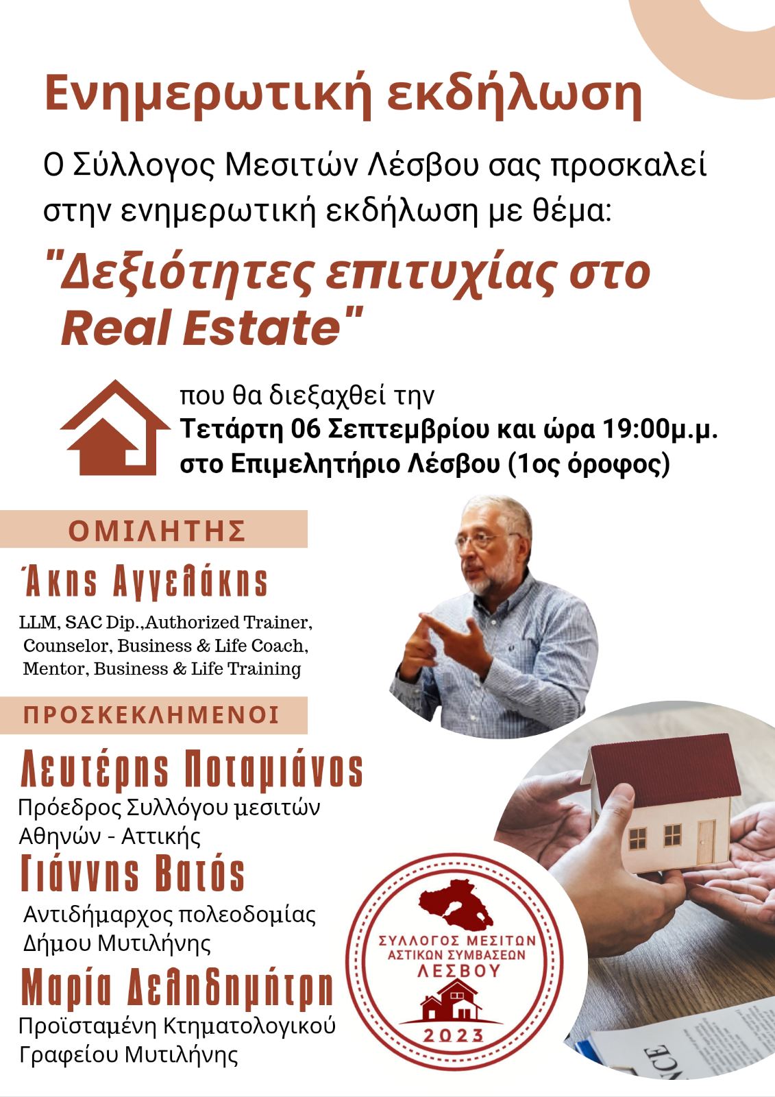 Αποκλειστικά για τα μέλη του Συλλόγου Μεσιτών Λέσβου