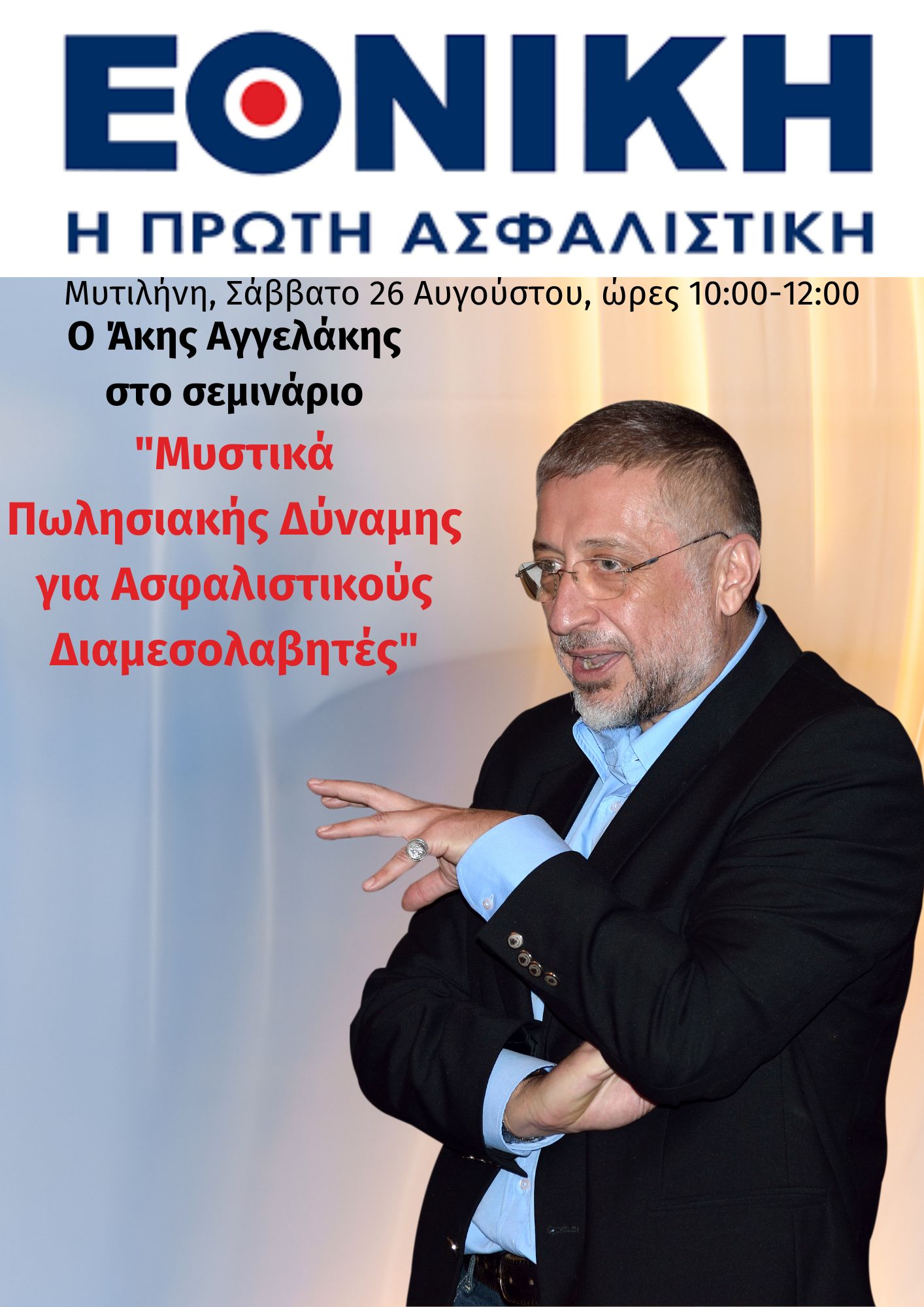 Αποκλειστικά για τους συνεργάτες της ΕΘΝΙΚΗΣ ΑΣΦΑΛΙΣΤΙΚΗΣ, υποκατάστημα Μυτιλήνης Θεματολογία Τα τρία είδη υποψήφιων πελατών. Οικονομικός Δαρβινισμός. Γίνε άνθρωπος της δράσης. Ασφαλιστική Πώληση: Μια ανθρωποκεντρική πώληση. Αντιευθραυστότητα: Μια ψυχική δεξιότητα. Από τη θεωρία στην πράξη. Aπό τις δικαιολογίες στην επιτυχία! Ετοιμάσου να κάνεις δυο πράγματα! Η Δύναμη των επιλογών. Η χρησιμότητα των Συστάσεων. Μην αφήνεις […]