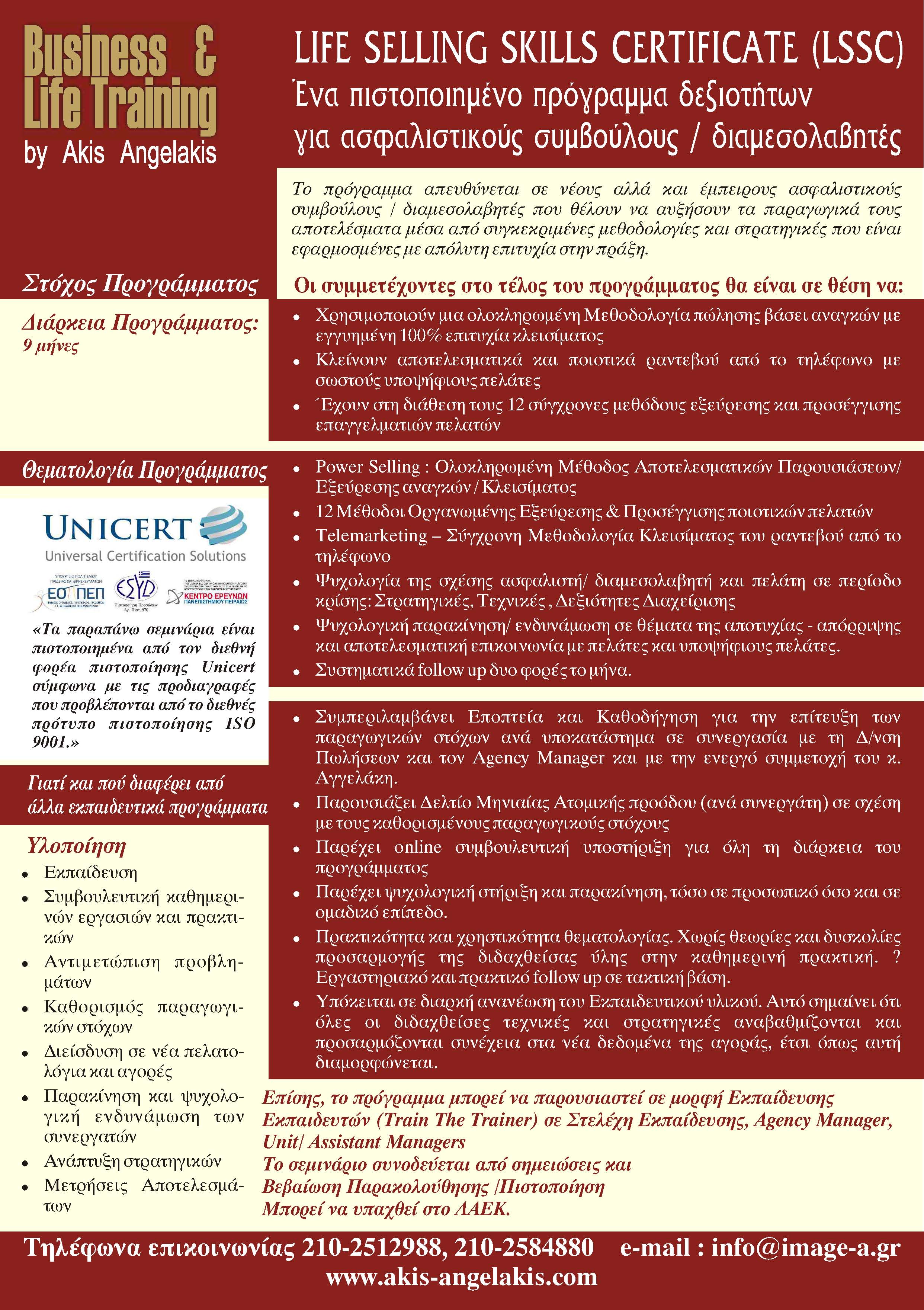 - Ψυχολογική παρακίνηση ενδυνάμωσης σε θέματα της αποτυχίας απόρριψης και αποτελεσματική επικοινωνία με πελάτες και υποψήφιους πελάτες Συστηματικά follow up 2 φορές το μήνα