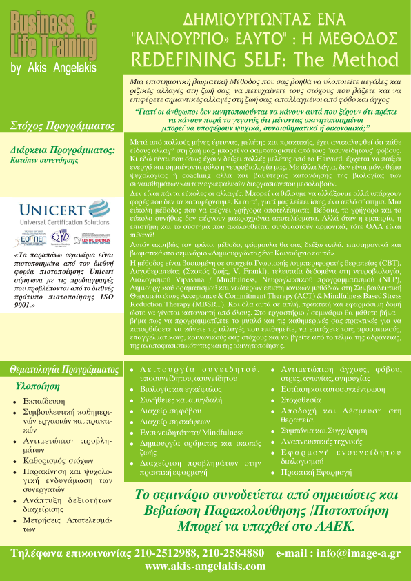 Πρόγραμμα 1: ΔΗΜΙΟΥΡΓΩΝΤΑΣ ΕΝΑ ΚΑΙΝΟΥΡΓΙΟ ΕΑΥΤΟ: Η ΜΕΘΟΔΟΣ (Redefining Self : The Method)