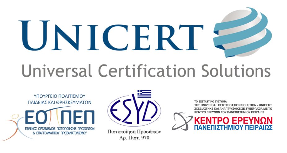 «Τα παραπάνω σεμινάρια είναι πιστοποιημένα από τον διεθνή φορέα πιστοποίησης Unicert σύμφωνα με τις προδιαγραφές που προβλέπονται από το διεθνές πρότυπο πιστοποίησης ISO 9001.»