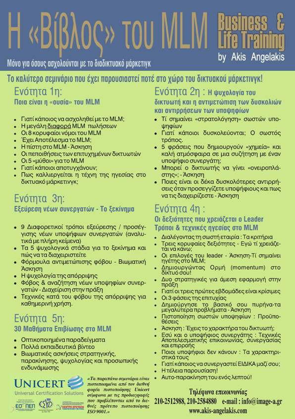 Η «Βίβλος» του δικτυακού Μάρκετινγκ   - Διάρκεια από 8 έως 48 ώρες (ανάλογα με συμφωνία με εταιρία/ πελάτη)